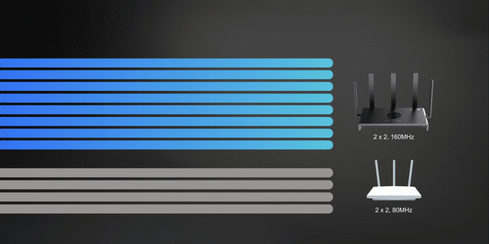 Dữ liệu so sánh tốc độ của giải pháp 2X2 WiFi 6 trên kênh 160MHz băng tần 5GHz với tốc độ của giải pháp 2X2 WiFi 5 trên kênh 80MHz băng tần 5GHz
