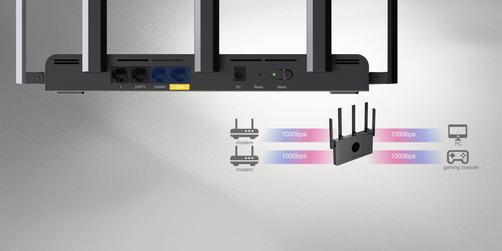 Bộ phát wifi Ruijie RG-EW3000GX PRO có tính năng WAN kép, mang lại Tốc độ Có dây Siêu Gigabit. Bạn có thể tận hưởng tốc độ có dây 2 Gbps từ modem đến PC và máy chơi game.